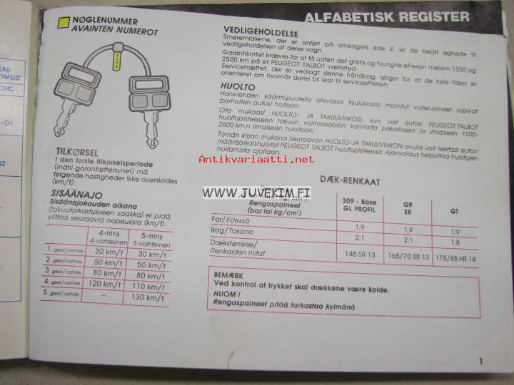 Peugeot 309 -käyttöohjekirja
