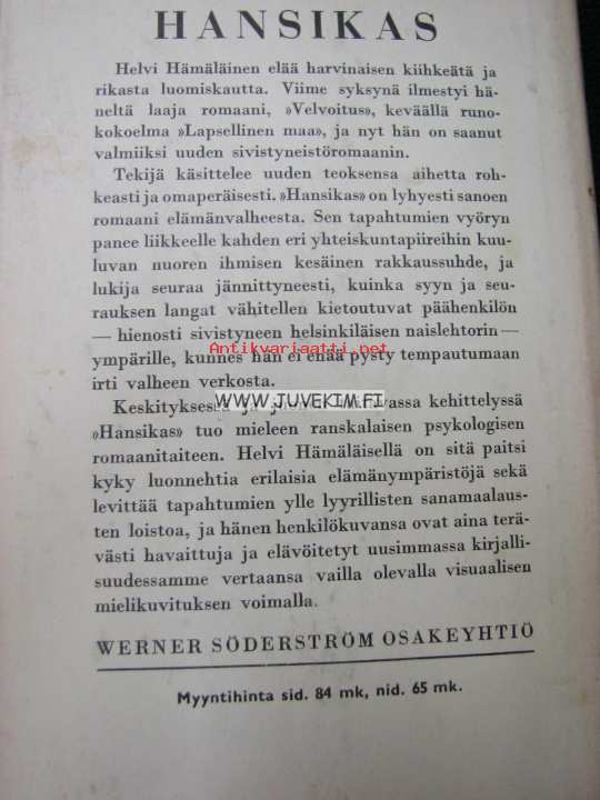 | Saatavilla | 1 kpl | | Julkaisuvuosi | 1943 | | Sivuja | 208 | | Kunto | K3 | | Sidonta/painoasu | Sidottu (kansipaperit) | | Kielet | Suomi |