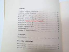 | Saatavilla | 1 kpl | | Julkaisuvuosi | 1938 | | Sivuja | 31 | | Painos | 4. | | Kunto | K3 | | Sidonta/painoasu | Nidottu (pehmeäk.) |