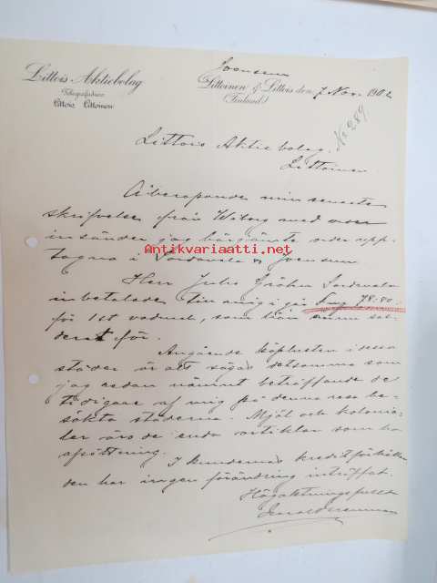 Littois Aktiebolag, Littois, (Littoinen), 7.11.1902 -asiakirja