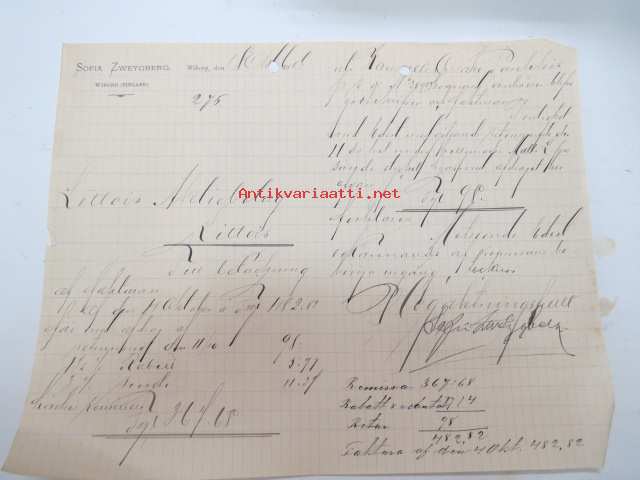 Sofia Zweygberg, Wiborg (Viipuri), 18.10.1902 -asiakirja