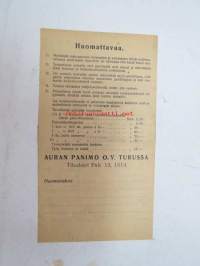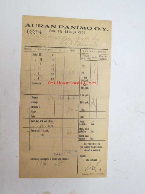 Auran Panimo - Saarinen Kioski Vistanmäki -lähetyskuitti 14.6.1937