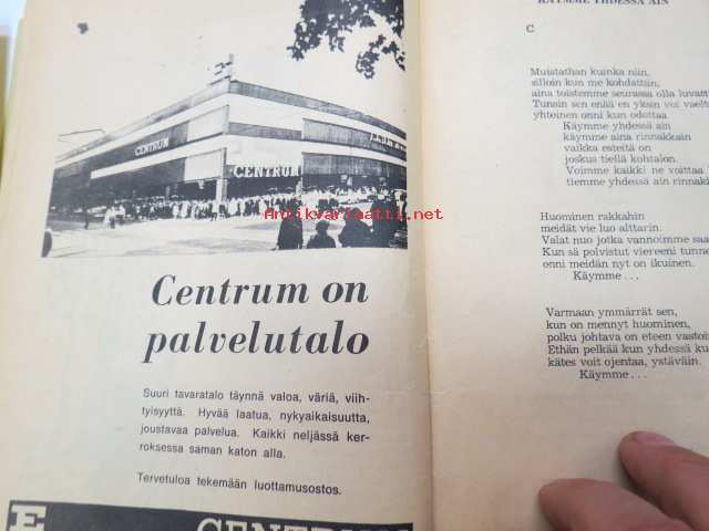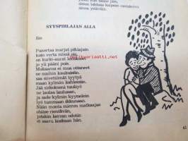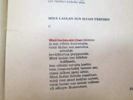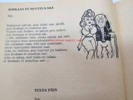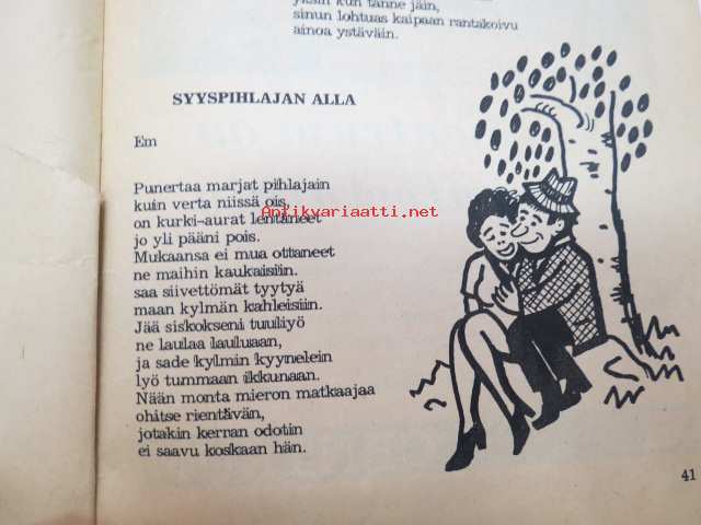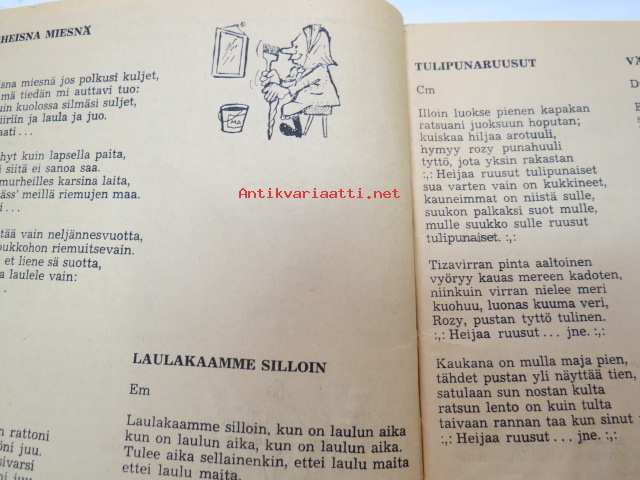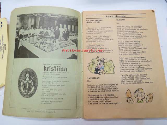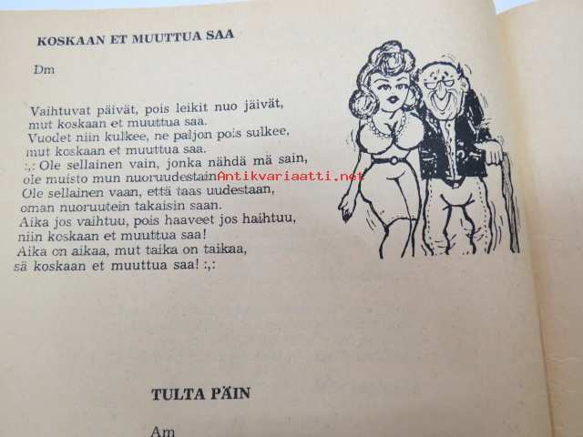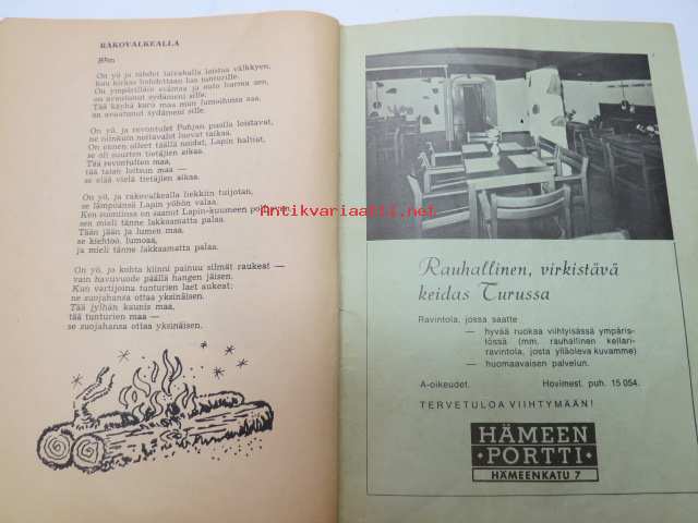 | Saatavilla | 1 kpl | | Julkaisuvuosi | 1973 | | Sivuja | 72 | | Painos | 1. | | Kunto | K2 | | Kulunut, huonokuntoinen | | Sidonta/painoasu | Nidottu (pehmeäk.) | | Kielet | Suomi |