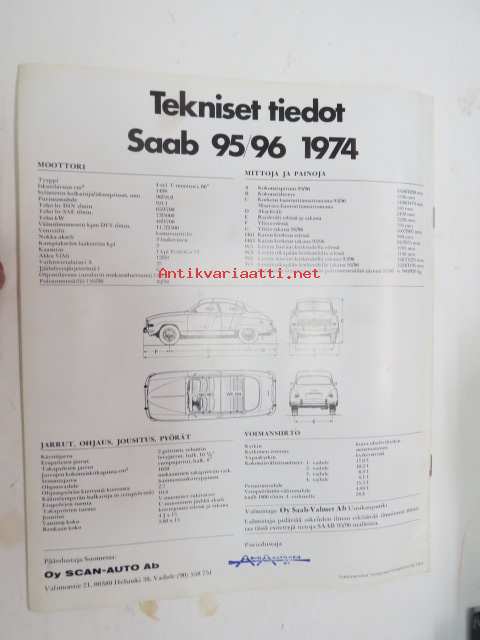 Saab 95, 96 1974 -myyntiesite