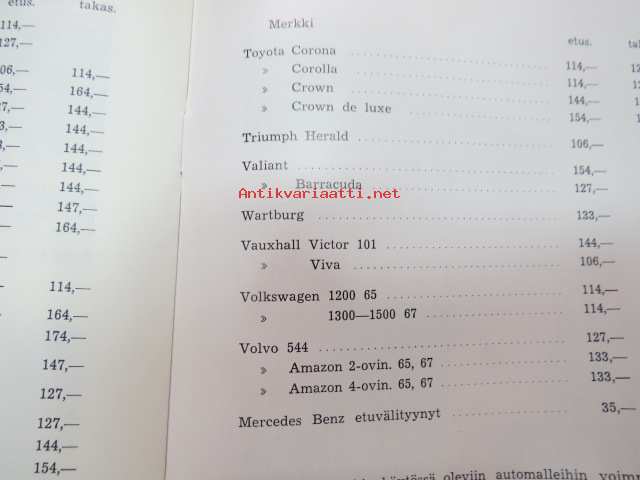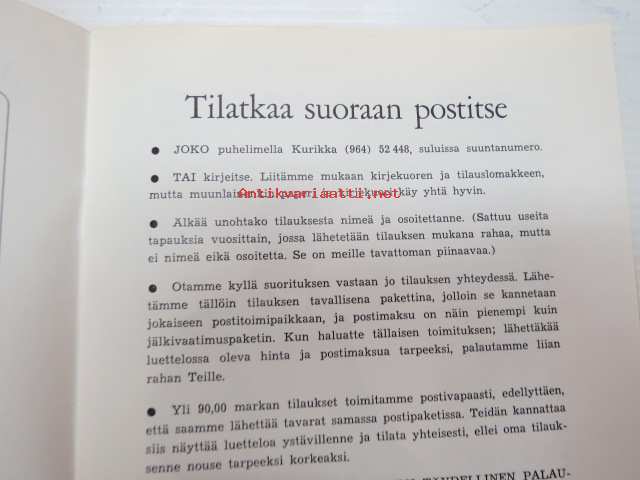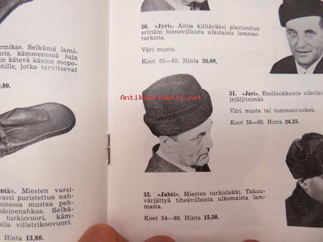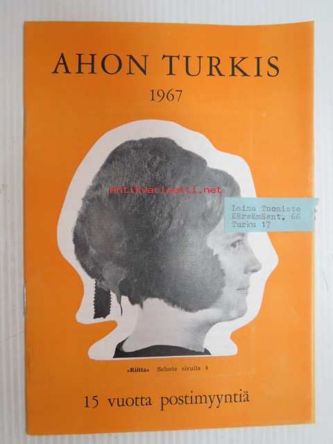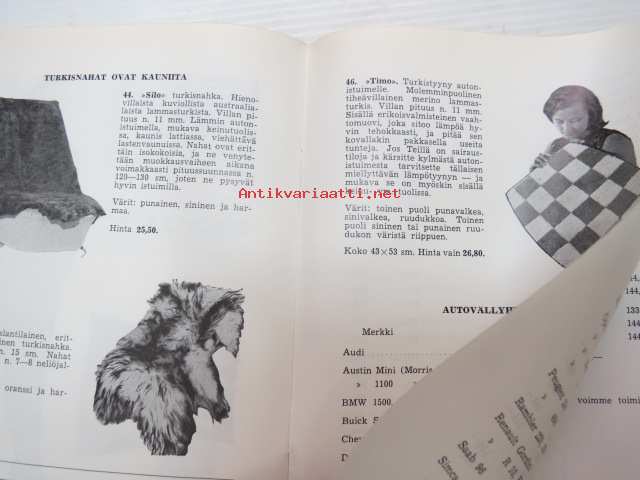 Ahon Turkis, Mieto -postimyyntiluettelo 1967, turkit, turkislakit, saappaat, hansikkaat, autovällyt, istuinsuojat