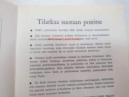 | Saatavilla | 1 kpl | | Julkaisuvuosi | 1967 | | Sivuja | 20 | | Kunto | K3 | | Sidonta/painoasu | Nidottu (pehmeäk.) | | Kielet | Suomi |