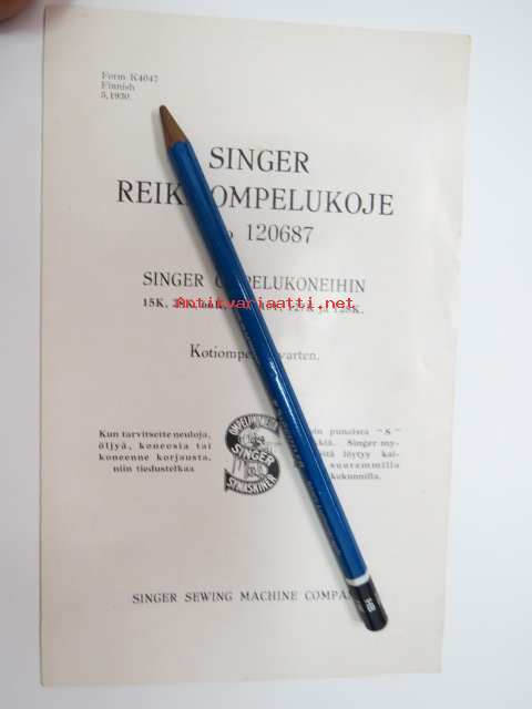 Singer Reikäompelukoje nr 120687 Singer ompelukoneihin 15K, 28K, 66K, 99K, 101, 127K ja 128K. Kotiompelua varten -esite