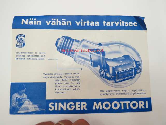 Singer (ompelukone) moottori - näin vähän virtaa tarvitaan -esite