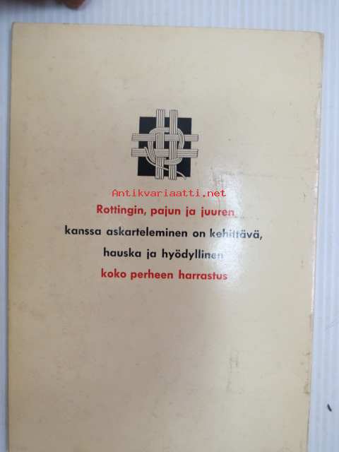 | Saatavilla | 1 kpl | | Julkaisuvuosi | 1959 | | Sivuja | 65 | | Painos | 6. | | Kunto | K2 | | Sidonta/painoasu | Nidottu (pehmeäk.) | | Kielet | Suomi |