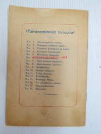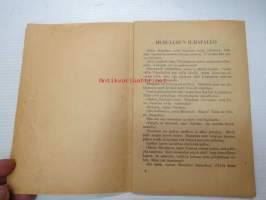 | Saatavilla | 1 kpl | | Julkaisuvuosi | 1946 | | Sivuja | 32 | | Painos | 1. | | Kunto | K2 | | Kulunut | | Sidonta/painoasu | Nidottu (pehmeäk.) | | Kielet | Suomi |
