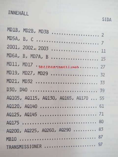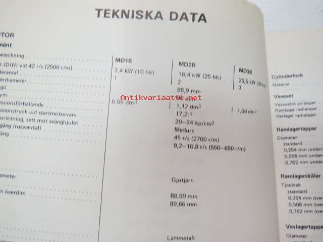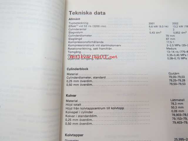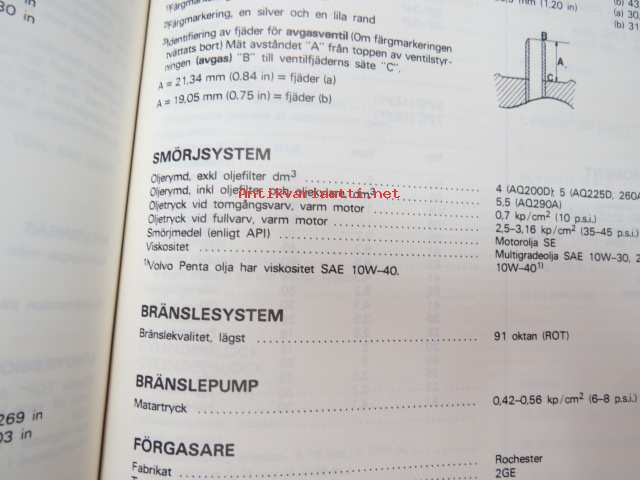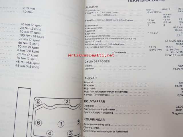 Volvo Penta "Mec Check" Manual -moottoreiden mallikohtaiset tekniset tiedot