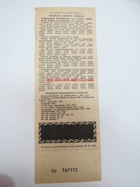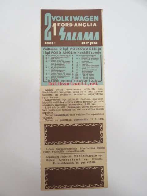 2 Volkswagen - 1 Ford Anglia / Salama-arpa / Maalaisliitto ry arpalipuke
