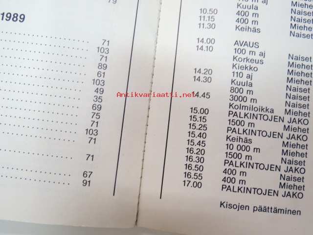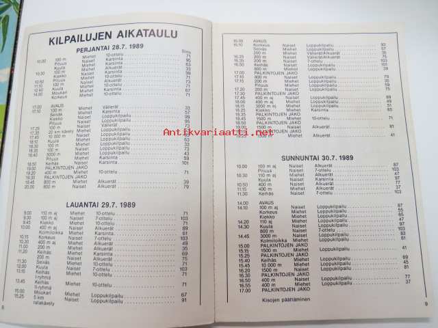 Kalevan kisat Turussa 28.-30.7.1989 käsiohjelma