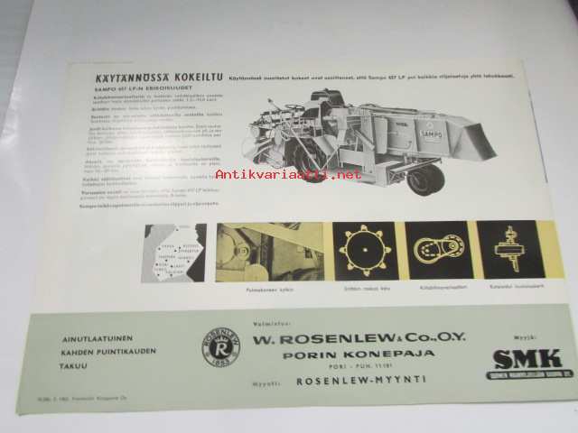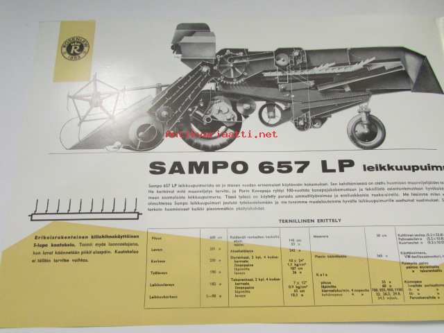 Sampo Rosenlew 657 LP leikkuupuimuri malli -62 -myyntiesite