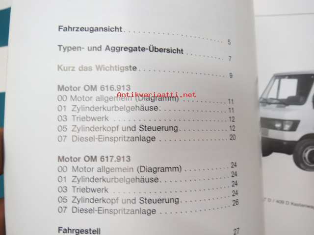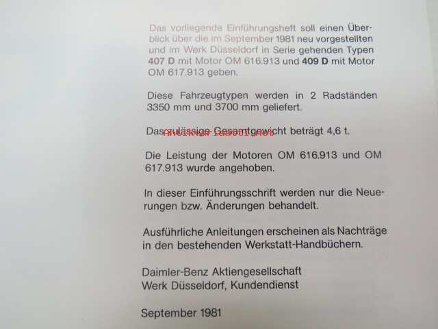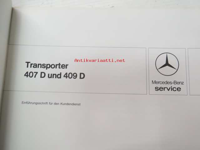 Mercedes-Benz Transporter 407 D und 409 D Einfürungsschrift für den Kundendienst - Ohjevihkonen huoltoa varten, Katso tarkemmat mallit ja sisällysluettelo kuvista, saksankielinen