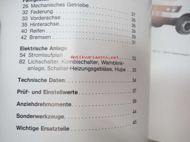 Mercedes-Benz Transporter 407 D und 409 D Einfürungsschrift für den Kundendienst - Ohjevihkonen huoltoa varten, Katso tarkemmat mallit ja sisällysluettelo