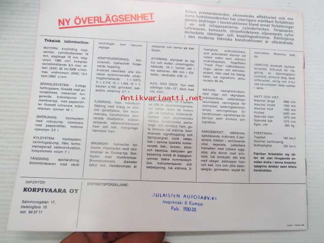 Chrysler Simca 1100, 1300/1508, Horizon -Workshop manual / korjaamokäsikirja suomeksi -kansio