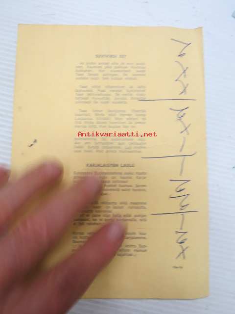| Saatavilla | 1 kpl | | Julkaisuvuosi | 1966 | | Sivuja | 4 | | Kunto | K2 | | Sidonta/painoasu | Pienpainate | | Kielet | Suomi |
