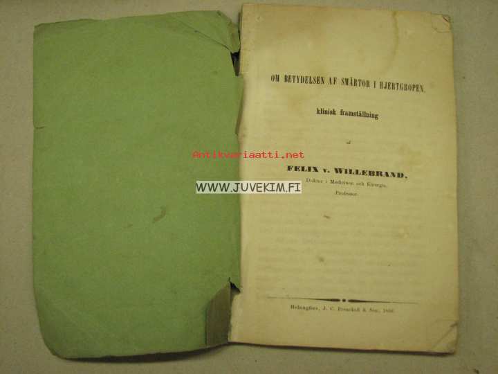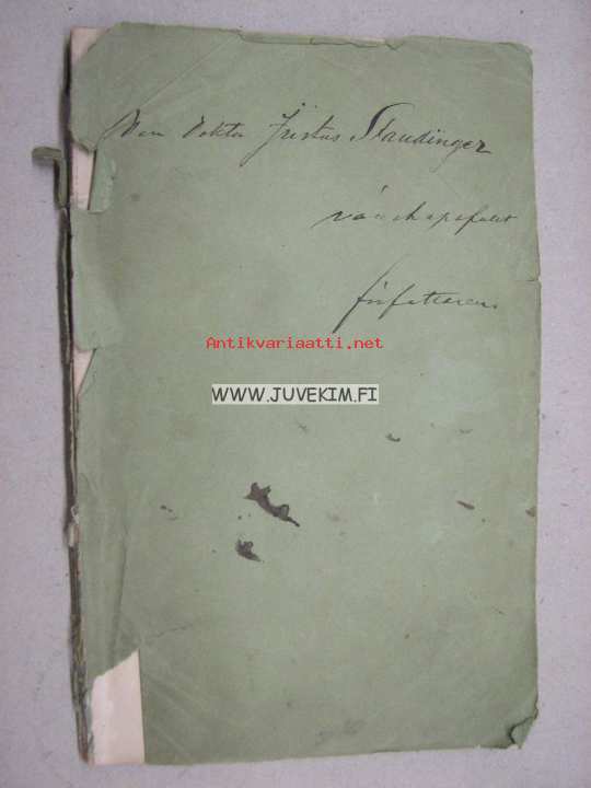 Willebrand Felix v., J.C. Frenckell & Son , 185612 x 19 cm kirja. Kannessa omiste tekijältä tohtori Justus Staudingerille.