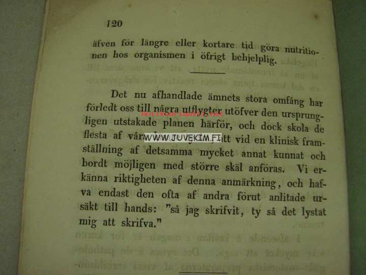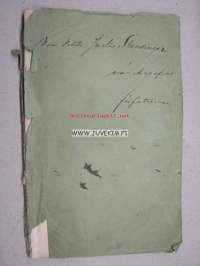 | Saatavilla | 1 kpl | | Julkaisuvuosi | 1856 | | Sivuja | 120 | | Painos | 1. | | Kunto | K3 | | Paperikansi lähes irti | | Sidonta/painoasu | Nidottu (pehmeäk.) | | Kielet | Suomi |