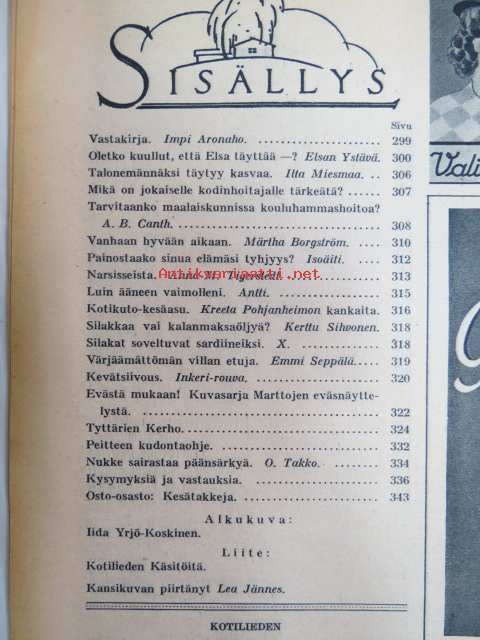 | Saatavilla | 3 kpl | | Julkaisuvuosi | 1937 | | Kunto | K3 | | Sidonta/painoasu | Lehti | | Kielet | Suomi |