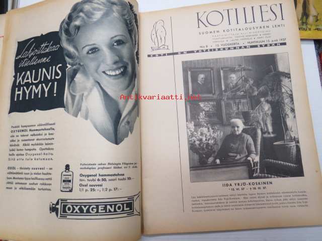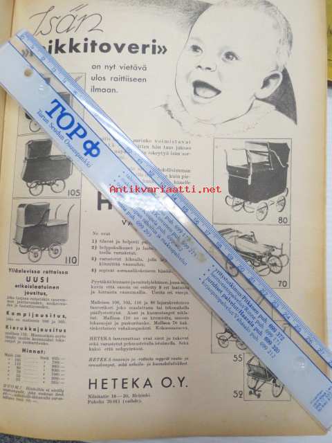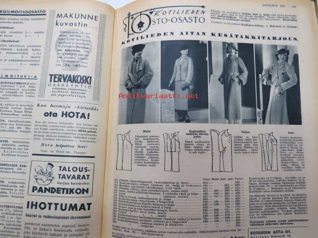 Kotiliesi 1937 nr 8 Huhtikuu. Ajankuvaa ja mainoksia vuodelta 1937. mm Heteka Oy:n lastenvaunumallisto.