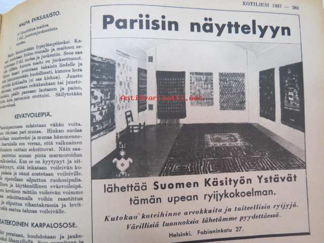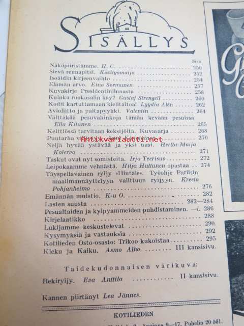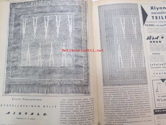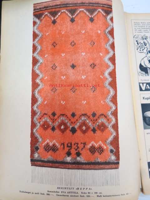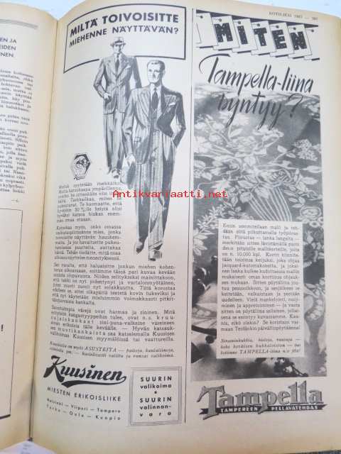 | Saatavilla | 1 kpl | | Julkaisuvuosi | 1937 | | Kunto | K2 | | Sidonta/painoasu | Lehti | | Kielet | Suomi |