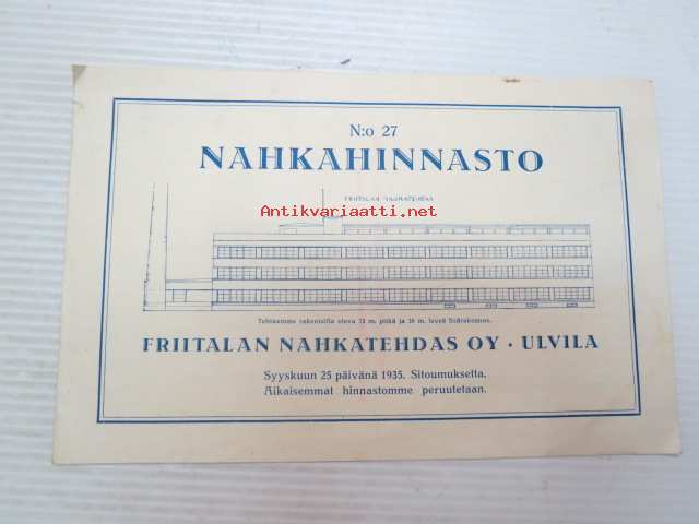 Friitalan Nahkatehdas Oy - Nahkahinnasto nr 27