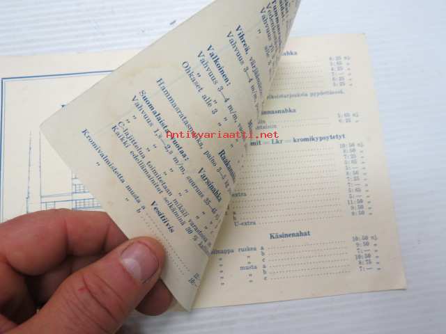| Saatavilla | 1 kpl | | Julkaisuvuosi | 1935 | | Sivuja | 4 | | Kunto | K3 | | Sidonta/painoasu | Nidottu (pehmeäk.) | | Kielet | Suomi, Ruotsi |