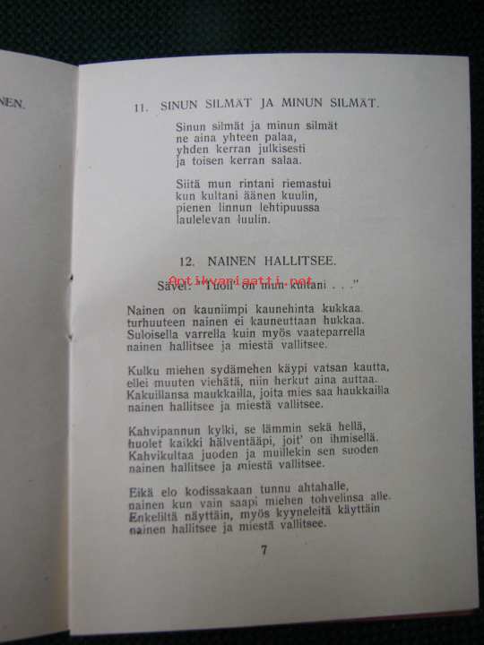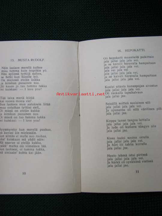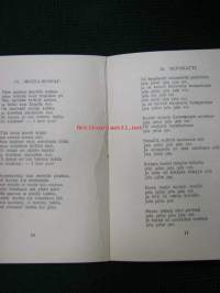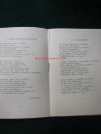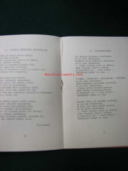 | Saatavilla | 1 kpl | | Julkaisuvuosi | 19 | | Sivuja | 15 | | Kunto | K3 | | Sidonta/painoasu | Taskukirja | | Kielet | Suomi |