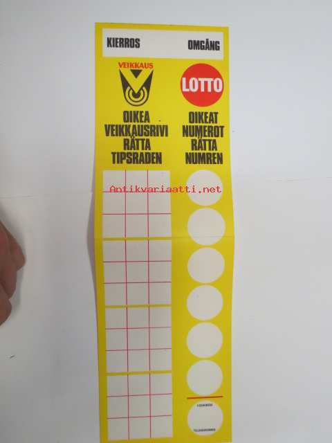 Veikkaus oikea veikkausrivi - rätta tipsraden / Lotto oikeat numerot - rätta numren -asiamiehen toimipaikkaan tarkoitetut oikeitten rivien ilmoitukset, ohutta