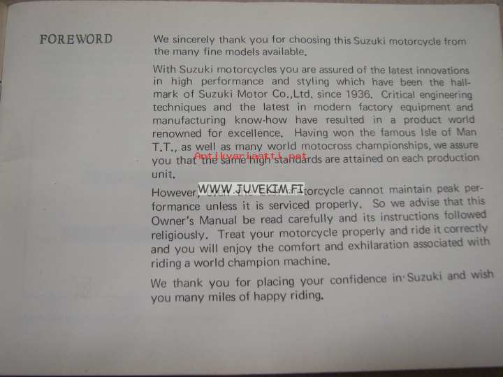 Suzuki TS125 owner´s manual -käyttöohjekirja
