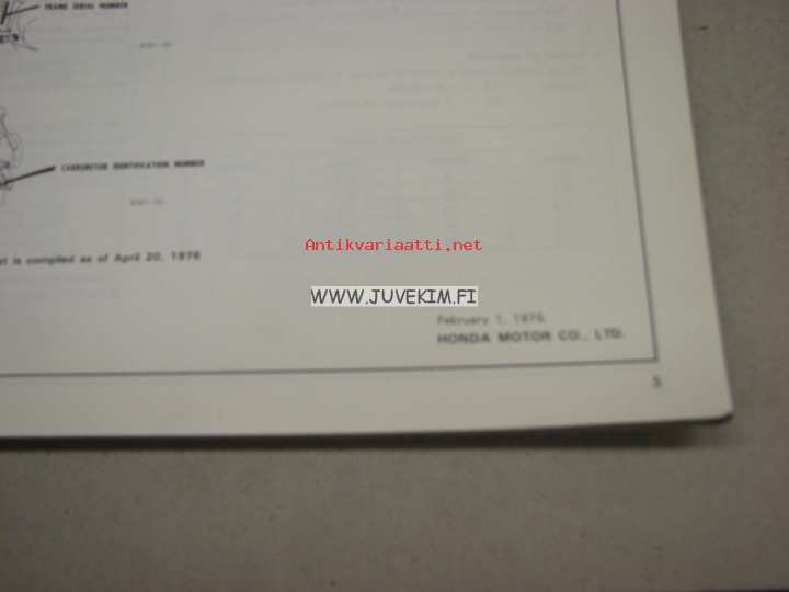 Honda Motor Co. , 1975A-4 kokoinen varaosaluettelo.