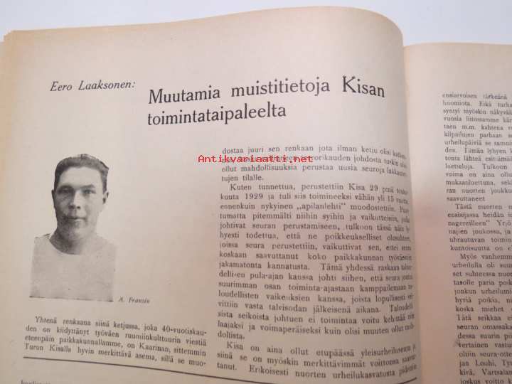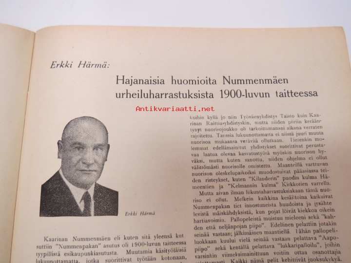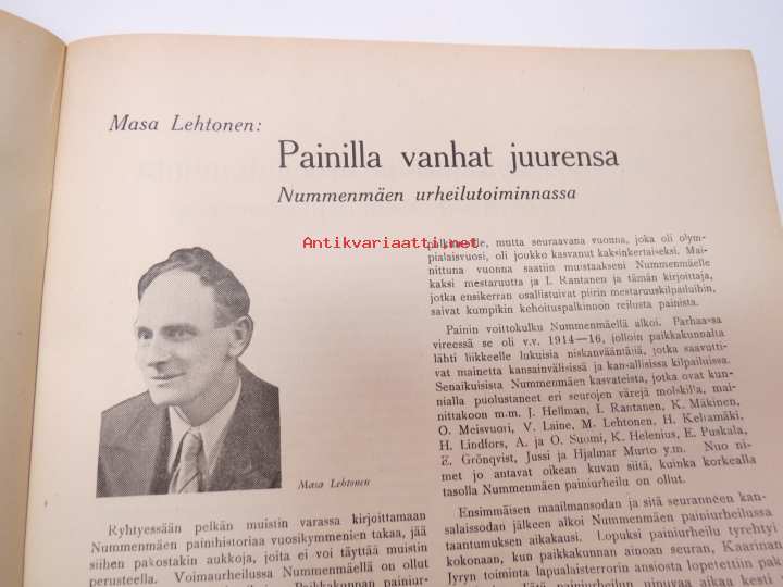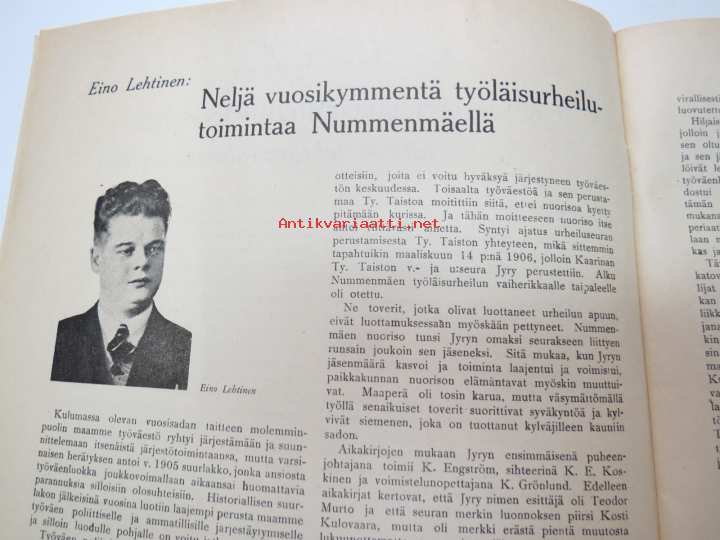 Nummenmäen työläisurheilun 40-vuotis Juhla-Julkaisu 1906-1946, sis. mm. seur. artikkelit; Eino Lehtinen - Neljä vuosikymmentä työläisurheilutoimintaa