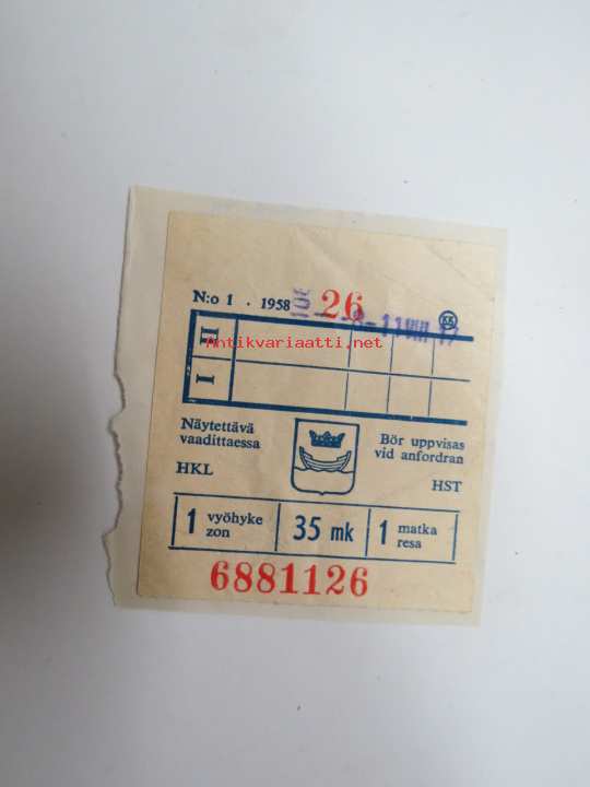HKL / HST 1 vyöhyke 35 mk -matkalippu