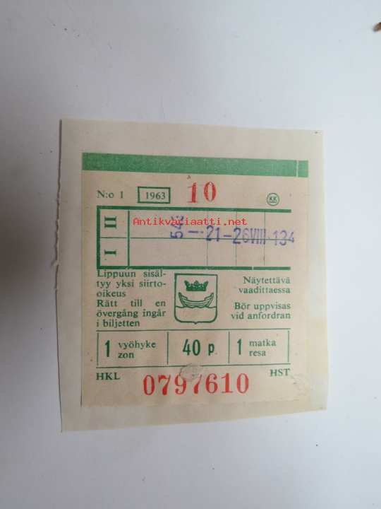 HKL / HST 1 vyöhyke 40 p -matkalippu