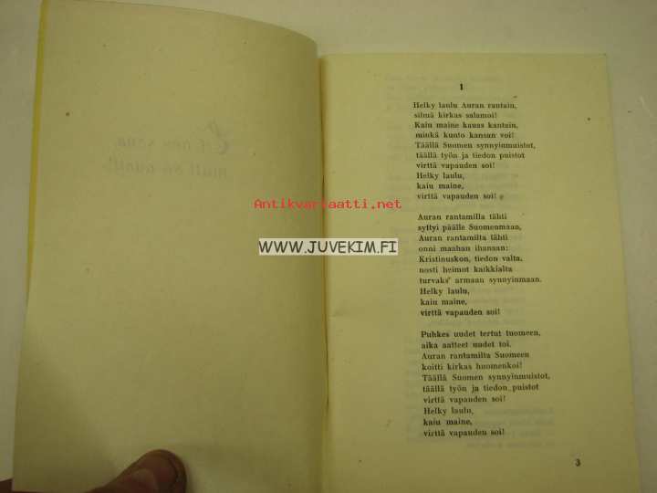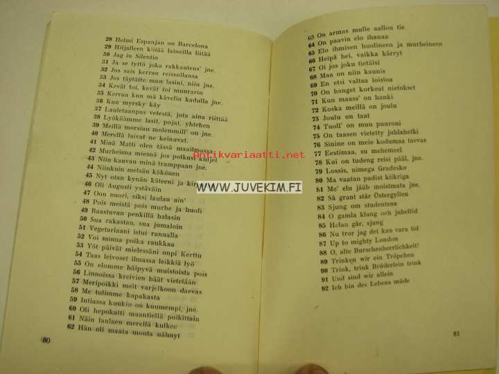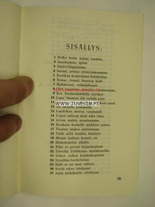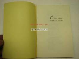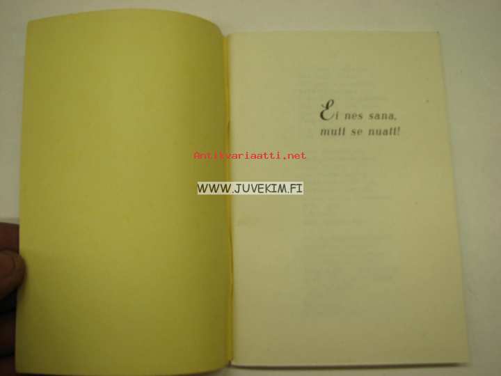 | Saatavilla | 1 kpl | | Julkaisuvuosi | 1945 | | Sivuja | 81 | | Painos | 1. | | Kunto | K3 | | Sidonta/painoasu | Nidottu (pehmeäk.) | | Kielet | Suomi |