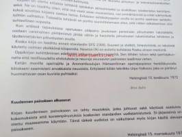 | Saatavilla | 1 kpl | | Julkaisuvuosi | 1972 | | Sivuja | 142 | | Painos | 11. | | Kunto | K3 | | Sidonta/painoasu | Nidottu (pehmeäk.) | | ISBN | 951-1-01237-1 | | Kielet | Suomi |