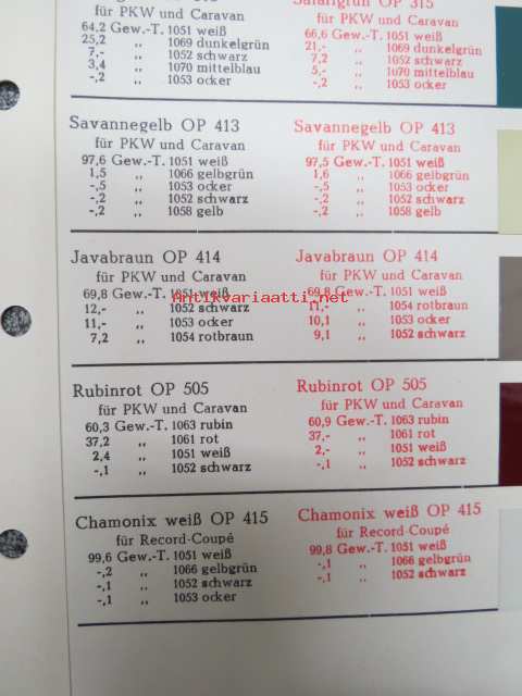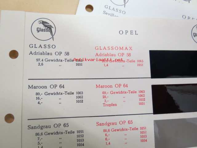 Opel / Glasso -värimallit