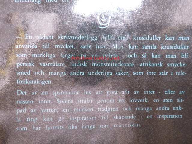 | Saatavilla | 1 kpl | | Julkaisuvuosi | 1958 | | Sivuja | 88 | | Painos | 1. | | Kunto | K3 | | Sidonta/painoasu | Nidottu (pehmeäk.) | | Kielet | Ruotsi |
