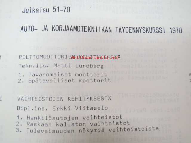Auto- ja korjaamotekniikan täydennyskurssi 1970