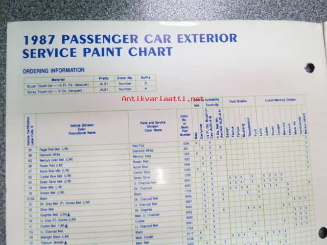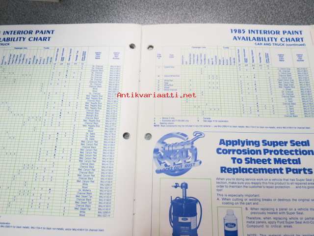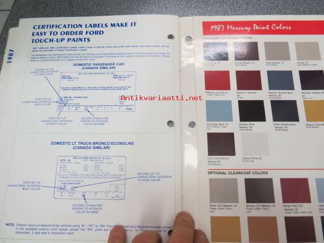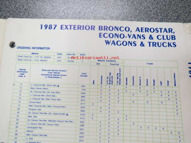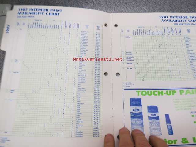 Ford USA 1985, -86, -87 Interior & Exterior Touch-Up paint color chart -värikartta korjausmaaleista