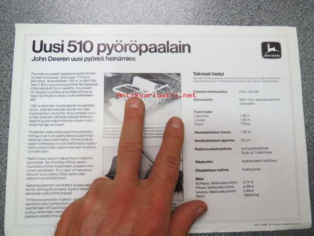John Deere 510 pyöröpaalain -myyntiesite