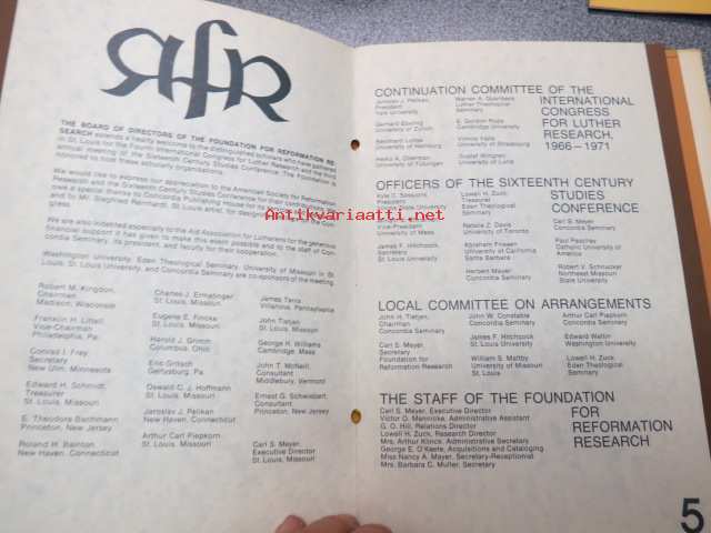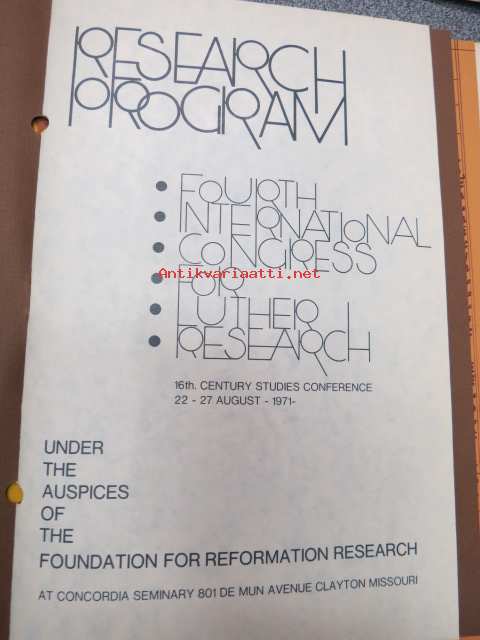 Fourth International Congress for Lutheran Research, 16th Century Studies Conference 1971, ST. Louis, Missouri at Concordia Seminary - Mr. Frederic Cleve