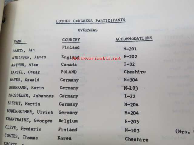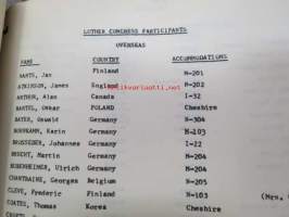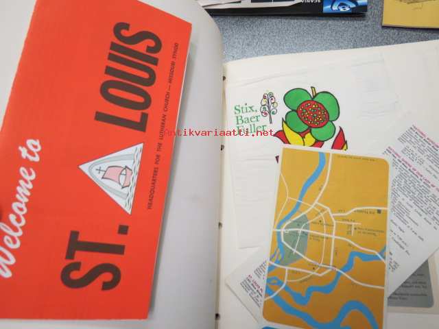 Fourth International Congress for Lutheran Research, 16th Century Studies Conference 1971, ST. Louis, Missouri at Concordia Seminary - Mr. Frederic Cleve -suomalaisen osallistujan / kirkonmiehen matkasta koottu kansio matkalippuineen, aikatauluineen, postikortteineen ym., katso runsaista kuvista