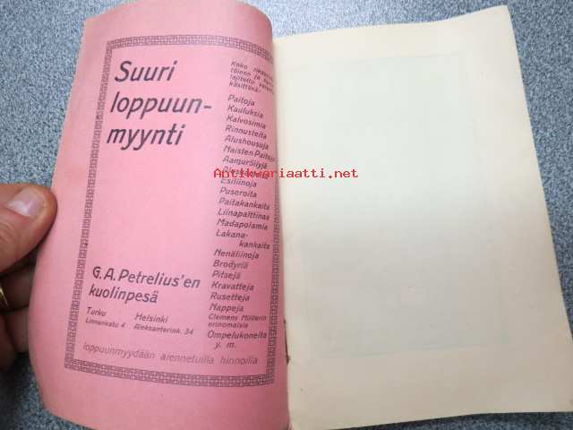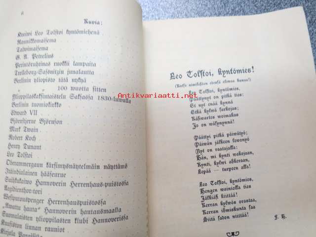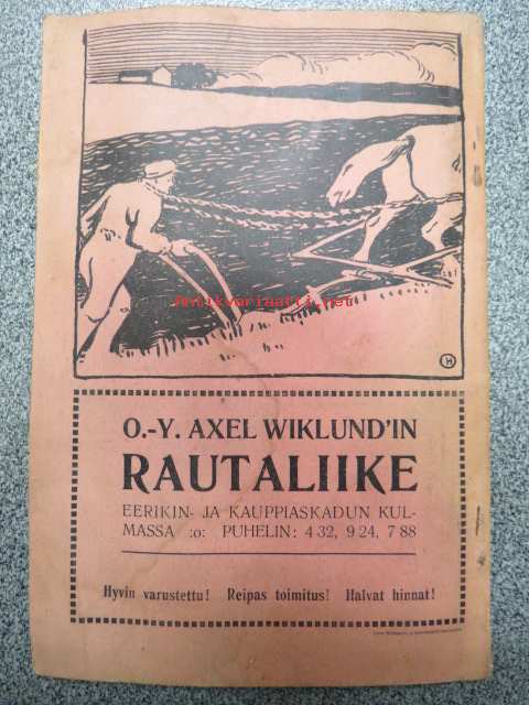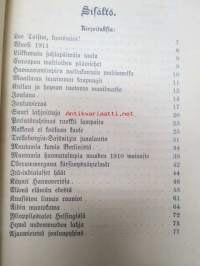 | Saatavilla | 1 kpl | | Julkaisuvuosi | 1910 | | Sivuja | 80 | | Kunto | K2 | | Sidonta/painoasu | Nidottu (pehmeäk.) | | Kielet | Suomi |