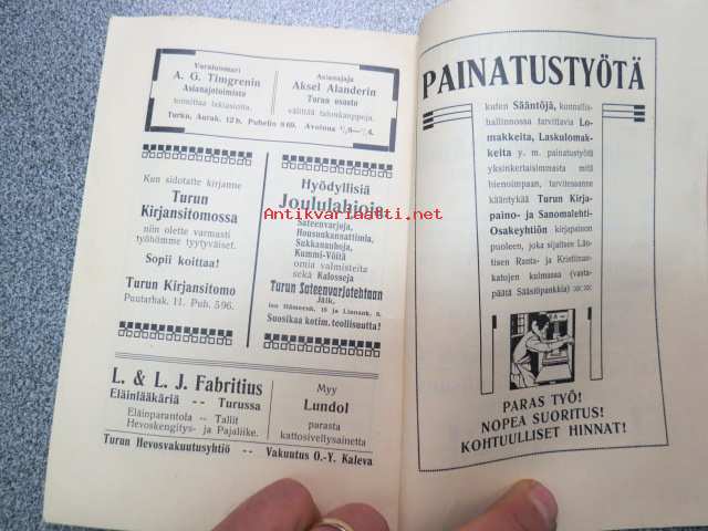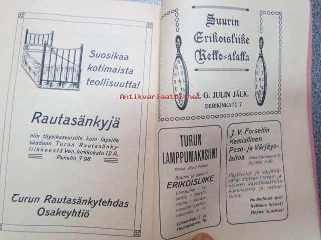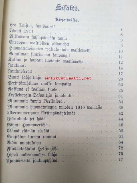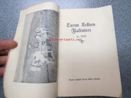 Turun Lehden kalenteri w. 1910 -lehden tilaajille ennen joulua jaettu kirja, jossa eri artikkeleita