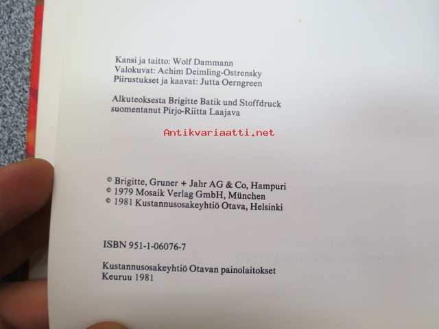 | Saatavilla | 1 kpl | | Julkaisuvuosi | 1981 | | Sivuja | 128 | | Painos | 1. | | Kunto | K3 | | Sidonta/painoasu | Kuvitettu kovakantinen | | ISBN | 951-1-06076-7 | | Kielet | Suomi |