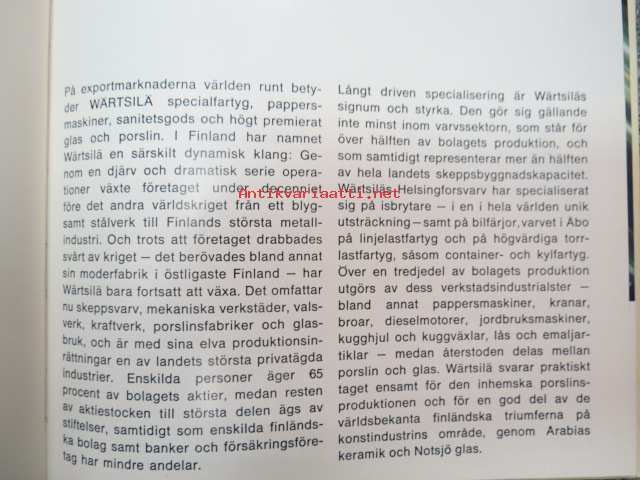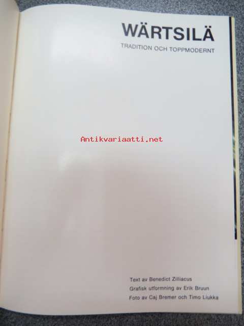 Wärtsilä - Tradition och toppmodernt -Wärtsilä-yhtymän yleisesittelyä ruotsin kielellä, teksti Benedict Zilliacus, Erik Bruun lay-out, Caj Bremer & Timo Liukka valokuvat