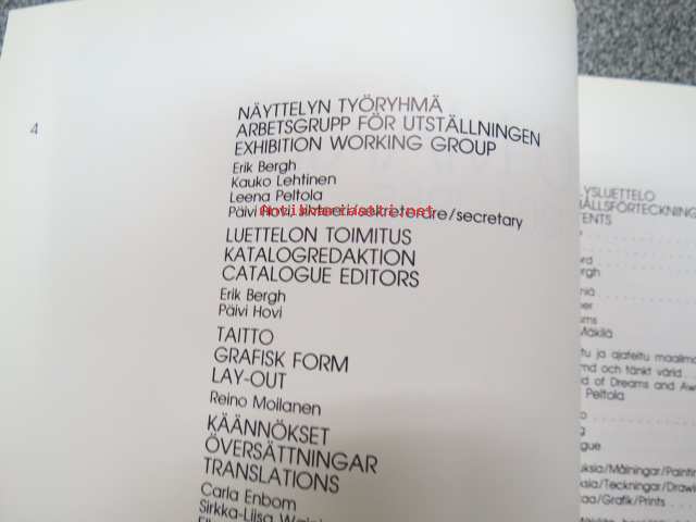 | Saatavilla | 1 kpl | | Julkaisuvuosi | 1986 | | Sivuja | 180 | | Painos | 1. | | Kunto | K3 | | Sidonta/painoasu | Nidottu (pehmeäk.) | | ISBN | 951-95190-0-9 | | Kielet | Suomi, ruotsi, englanti |